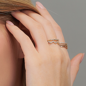 Alba Çok Taşlı Baklava Desenli Altın Yüzük