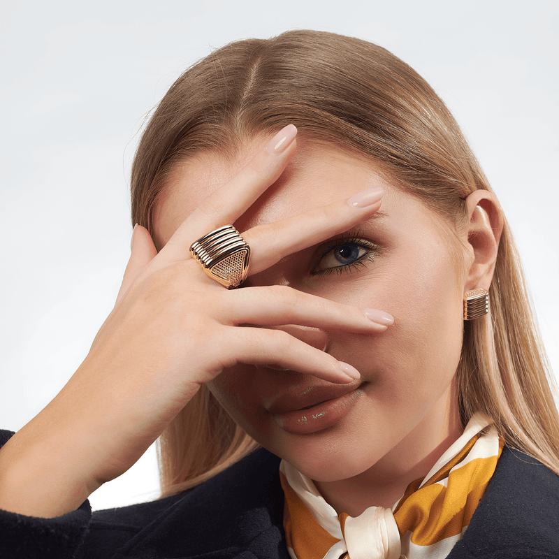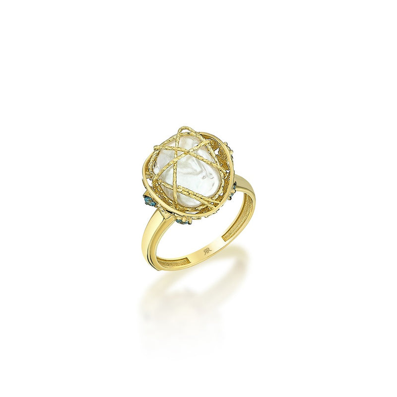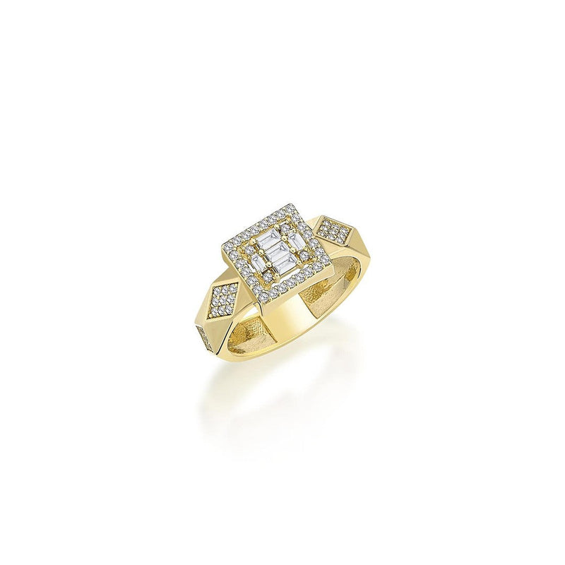 Alba Çok Taşlı Baklava Desenli Altın Yüzük