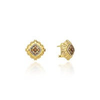 Regina Gömülü Taşlı Altın Küpe - 14 Ayar Sarı Altın