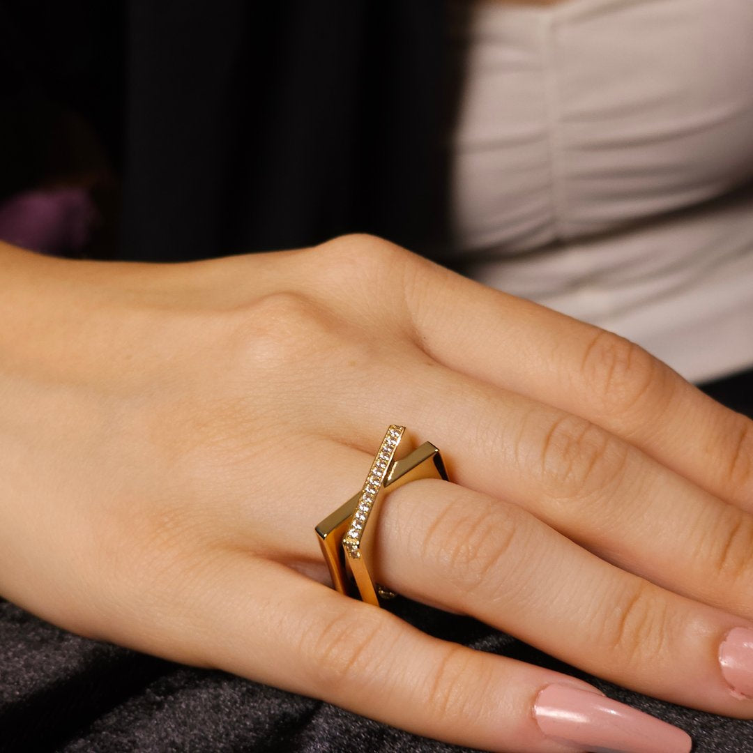 Stil sahibi kadınların tercihi Sıra Taşlı Köşeli Altın Yüzük ile kombinlerinize zarif bir dokunuş katın. Stoklarla sınırlı fırsatları kaçırmayın!