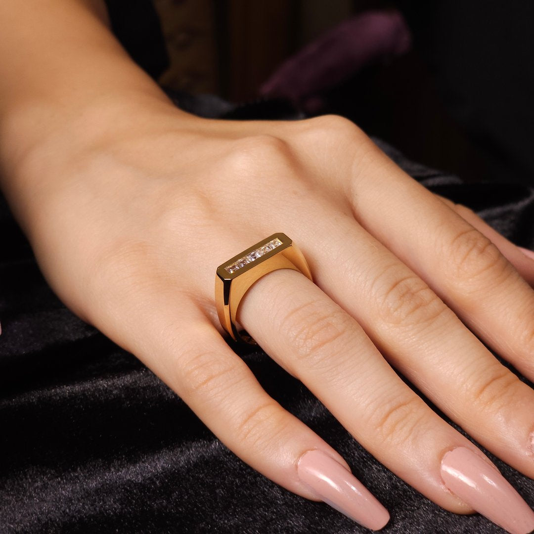 Sıra Taşlı Şık Altın Yüzük şimdi sepette indirim fırsatıyla! Şıklığınızı tamamlayan bu zarif parçayı kaçırmayın!