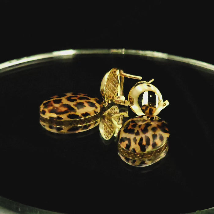 Hızlı Görüntüleme Zarif formuyla öne çıkan Leopar Mineli Oval Altın Küpe, 14 ayar altın...