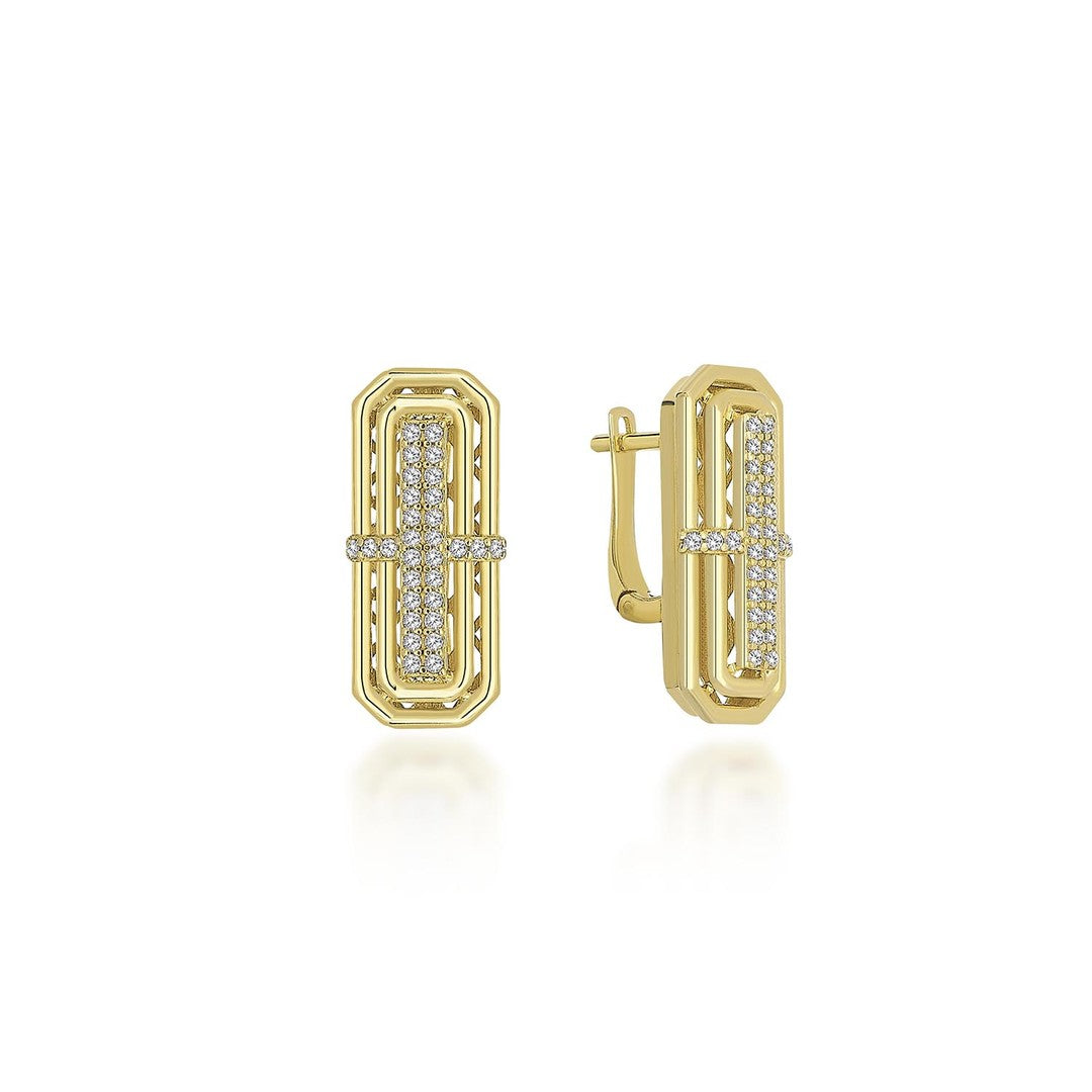 Sıra Taşlı Elegant Altın Küpe - 14 Ayar Sarı Altın