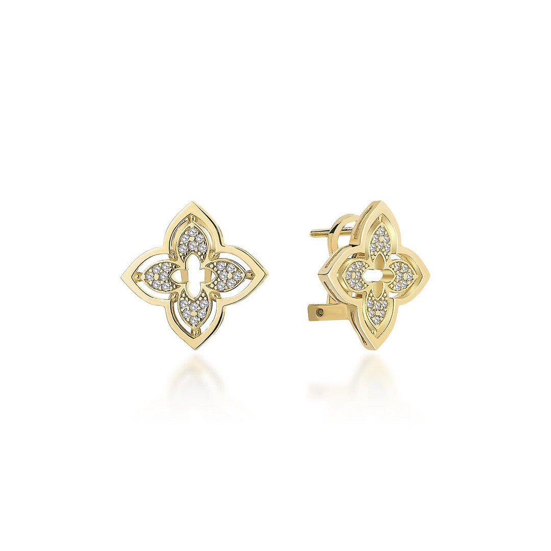 Taşlı Çiçek Altın Küpe - 14 Ayar Sarı Altın